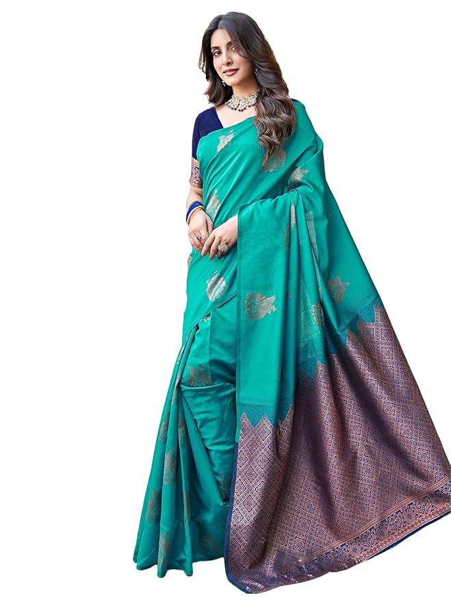 Embrace classic Indian craftsmanship with the Zyra Wear Women’s Banarasi Silk Jacquard Saree, designed to reflect grace, heritage, and sophistication. This saree features a beautifully woven jacquard pattern inspired by traditional Banarasi artistry, making it a perfect choice for festive and ceremonial occasions.
