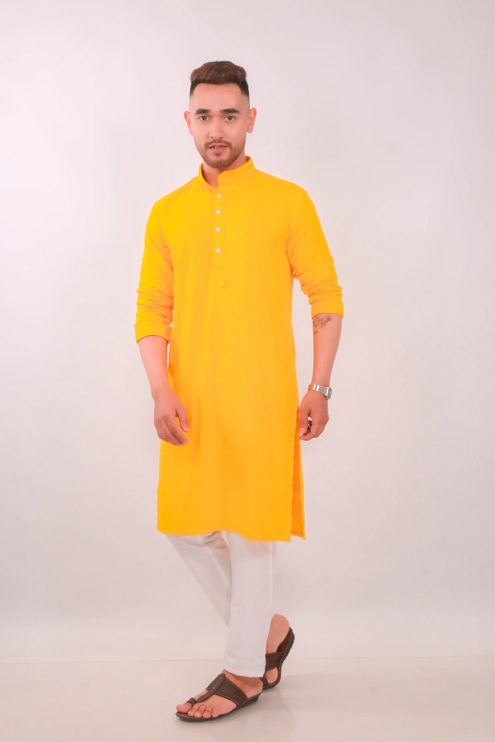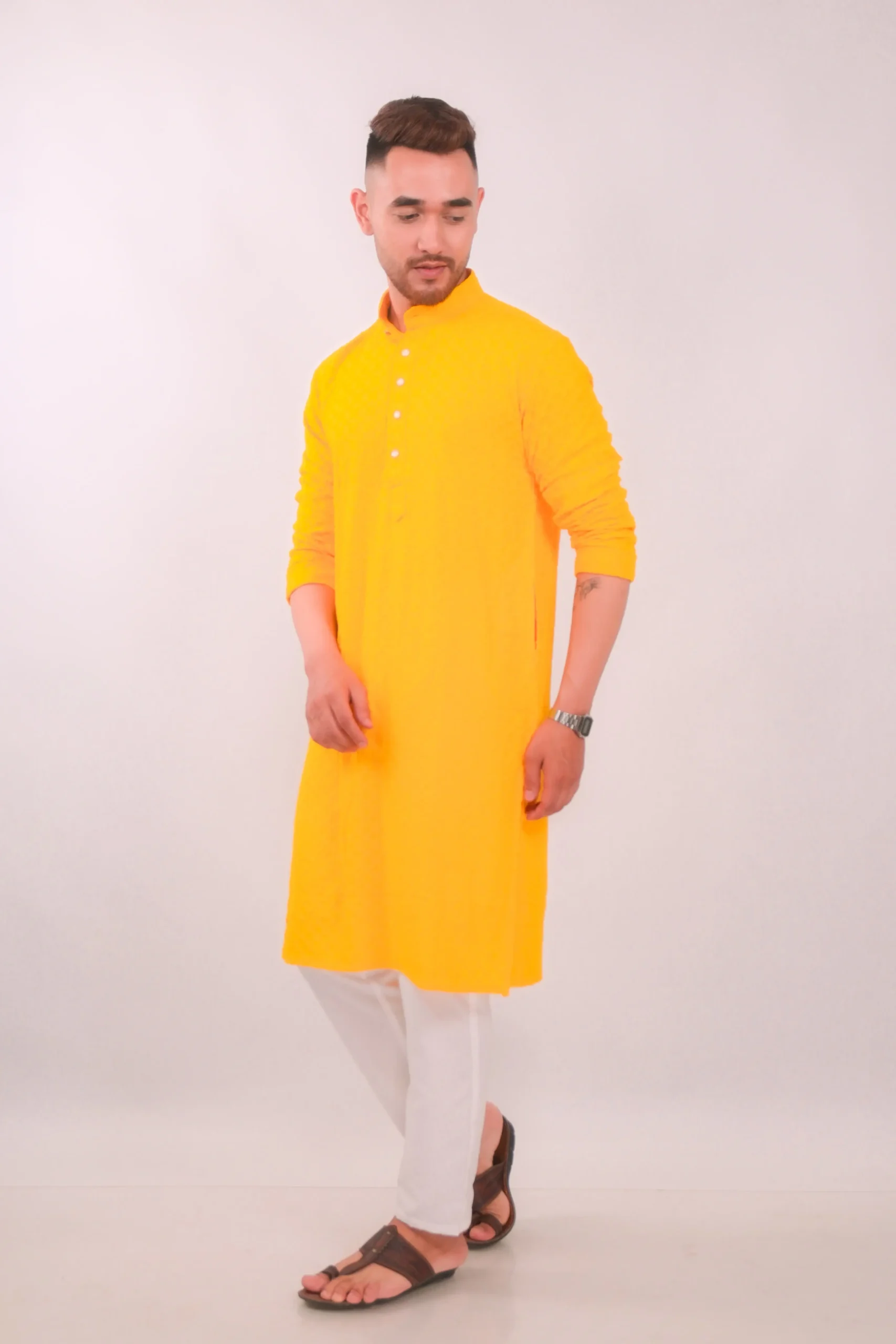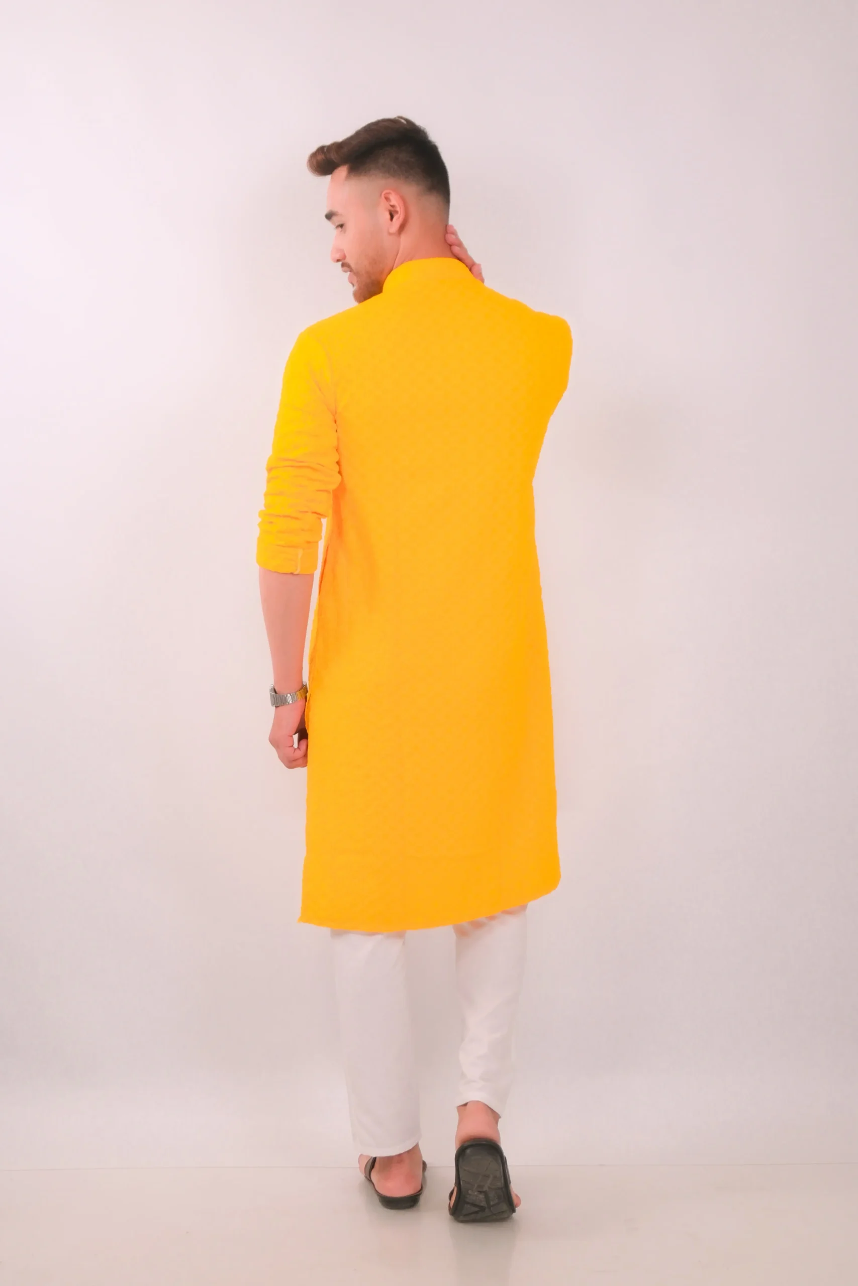 Step into timeless elegance with our Yellow Chikankari Kurta Set, a beautiful blend of tradition and comfort. Designed in pure cotton fabric, this set features intricate chikankari embroidery that highlights fine craftsmanship. The set is paired with comfortable bottoms and a matching dupatta, making it a complete outfit for all occasions.